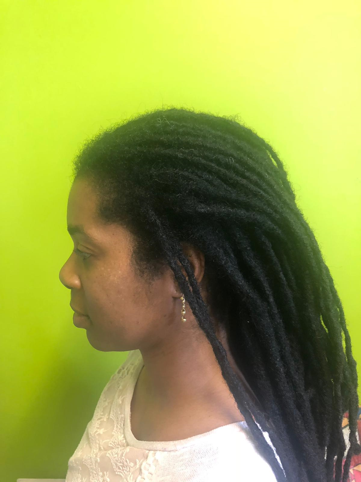 Mayra is al zo’n 20 jaar klant, begonnen bij Levi’s Dreads, het bedrijf van mijn moeder. Ze heeft jaren in Suriname gewoond en heeft nu haar plek in Londen gevonden. Dankzij social media heeft ze haar weg terug naar ons gevonden en hebben we elkaar weer ontmoet voor een loc maintenance.